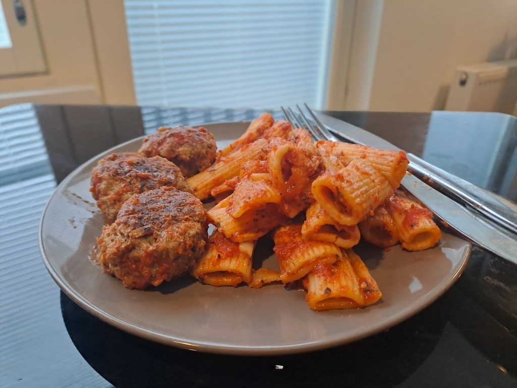Erityisesti minua on ilahduttanut jättilihapullapasta-ateria. Tässä tuhdissa ateriassa on lihapullia ja maukasta rigatonipastaa tomaattikastikkeessa. Olen ennen jopa vältellyt parmesaanijuustoa, mutta sekään ei tässä ateriassa haittaa. Lihapullien ja pastan maku on kohdillaan. Tuntuu, että nämä ateriat ovat omalla tasollaan mikroaterioiden valikoimissa. Hintakin tosin on kalliimpi.