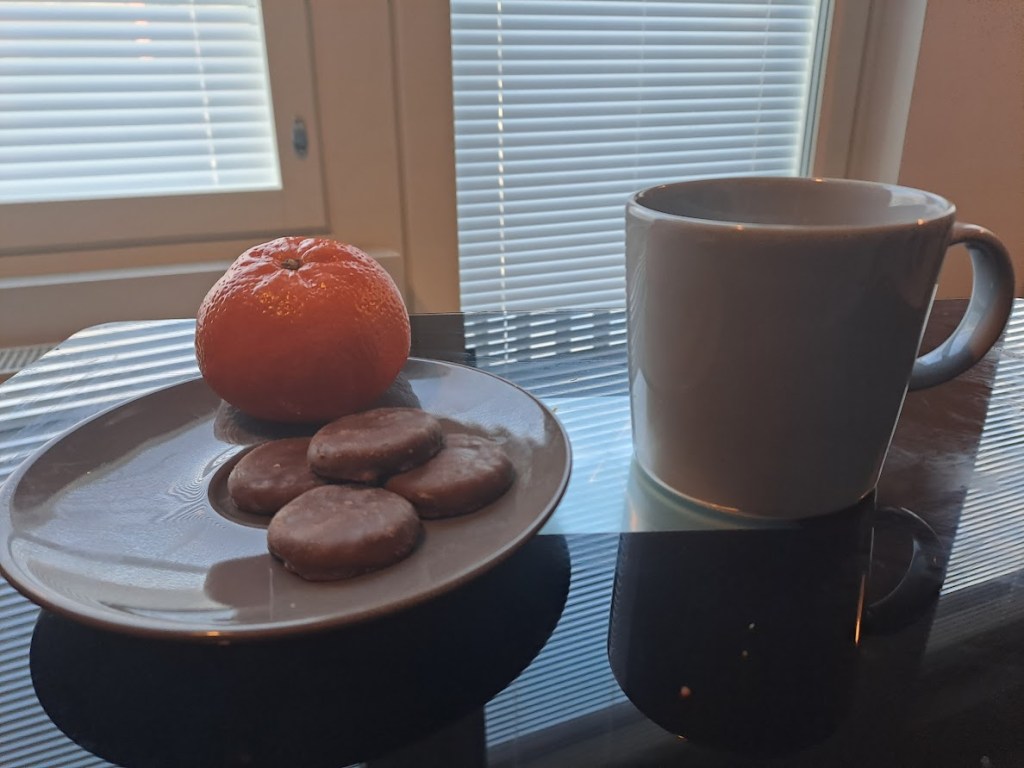 Oli kova nälkä joten söin burritoa hieman lisää. Sitten ateria ei yksinkertaisesti enää maistunut. En saanut syötyä lounasta loppuun. Söin burritosta vain puolikkaan pätkän. En ollut ostanut kaupasta juuri mitään muuta. Lounaaksi riitti mandariini ja muutama keksi.