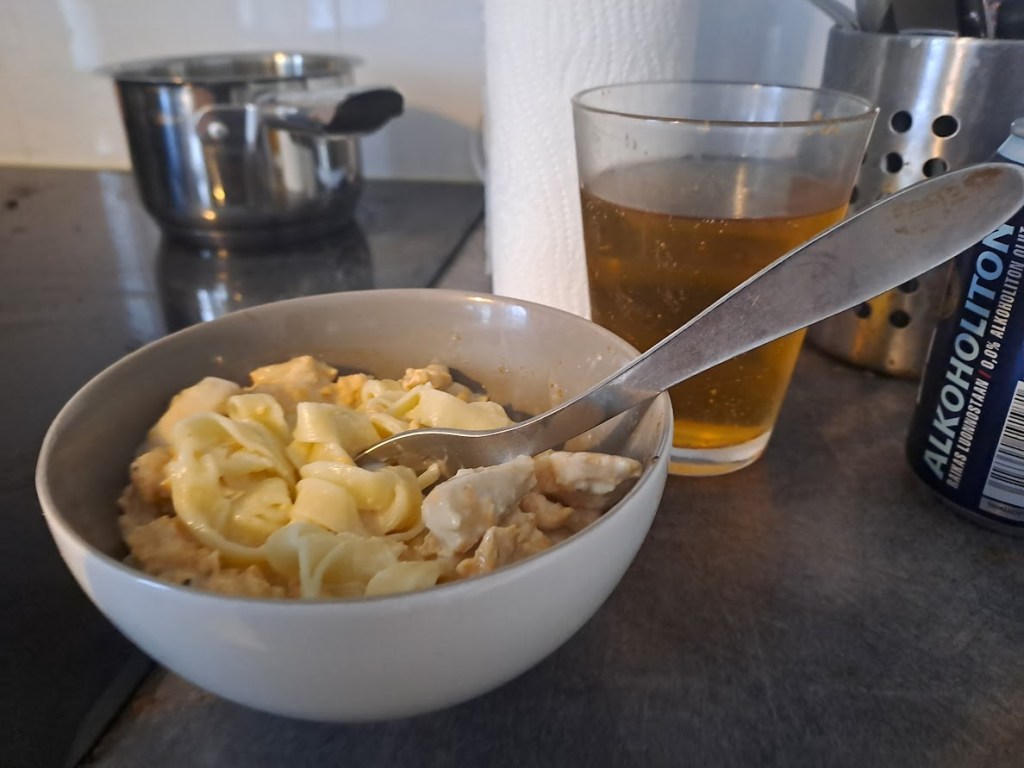 Omasta kanapastasta tuli kuitenkin melko hyvää. Mutta en välttämättä vielä näillä pastataidoillani tarjoaisi ruokiani muille. Mutta on hyvä harjoitella – jos eteen tulisi tilanne, jossa saisin laittaa pastaa jollekin vaikka illalliseksi.