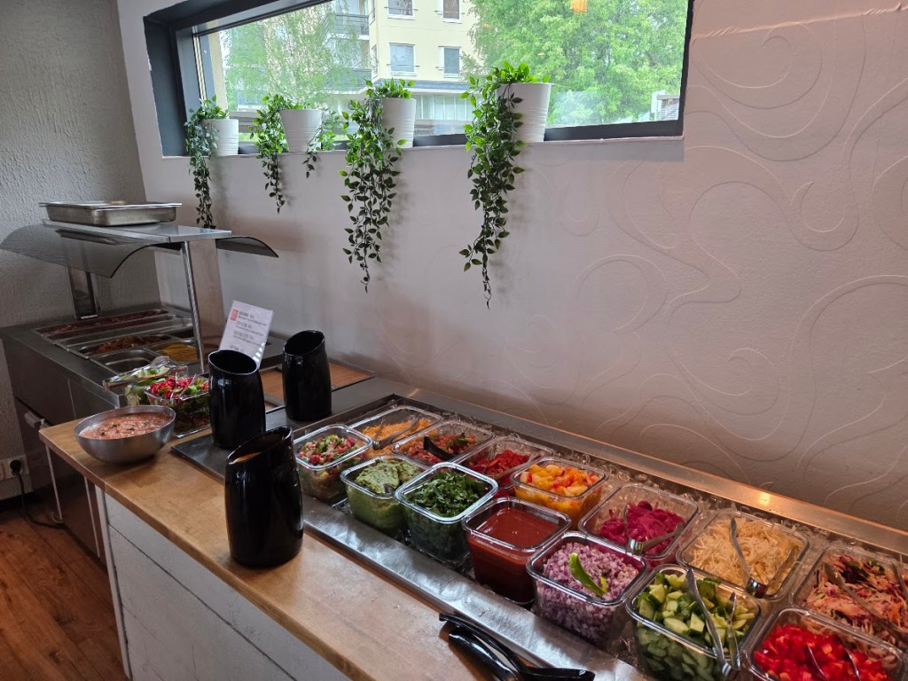 Runsaasta noutopöydästä voi koota annoksen oman mieltymyksensä mukaan. Tacobuffan tarjonta on runsas. On muun muassa paprikaa, sipulia, tomaattia, avokadoa ja erilaisia salaatteja. Tarjolla on myös monenlaisia kastikkeita.