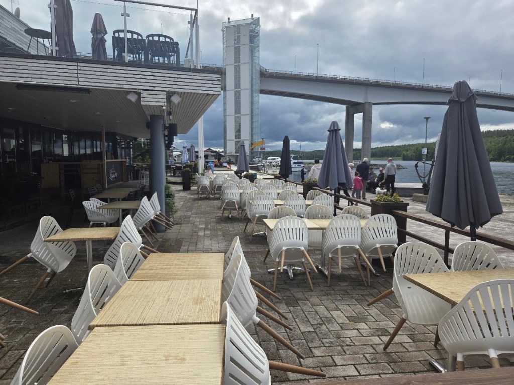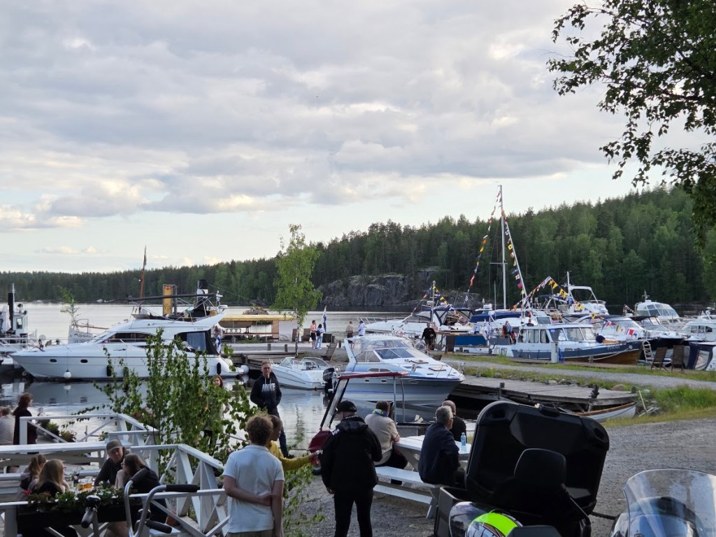 Juhannusaaton iltana oli hieman taukoa sateessa, ja silloin ajelimme kaverin kanssa lomakeskukseen, jossa on loma-asutusta, venesatama ja ravintoloita. Paikka oli täynnä lomailijoita, ja tunnelma oli hieno.